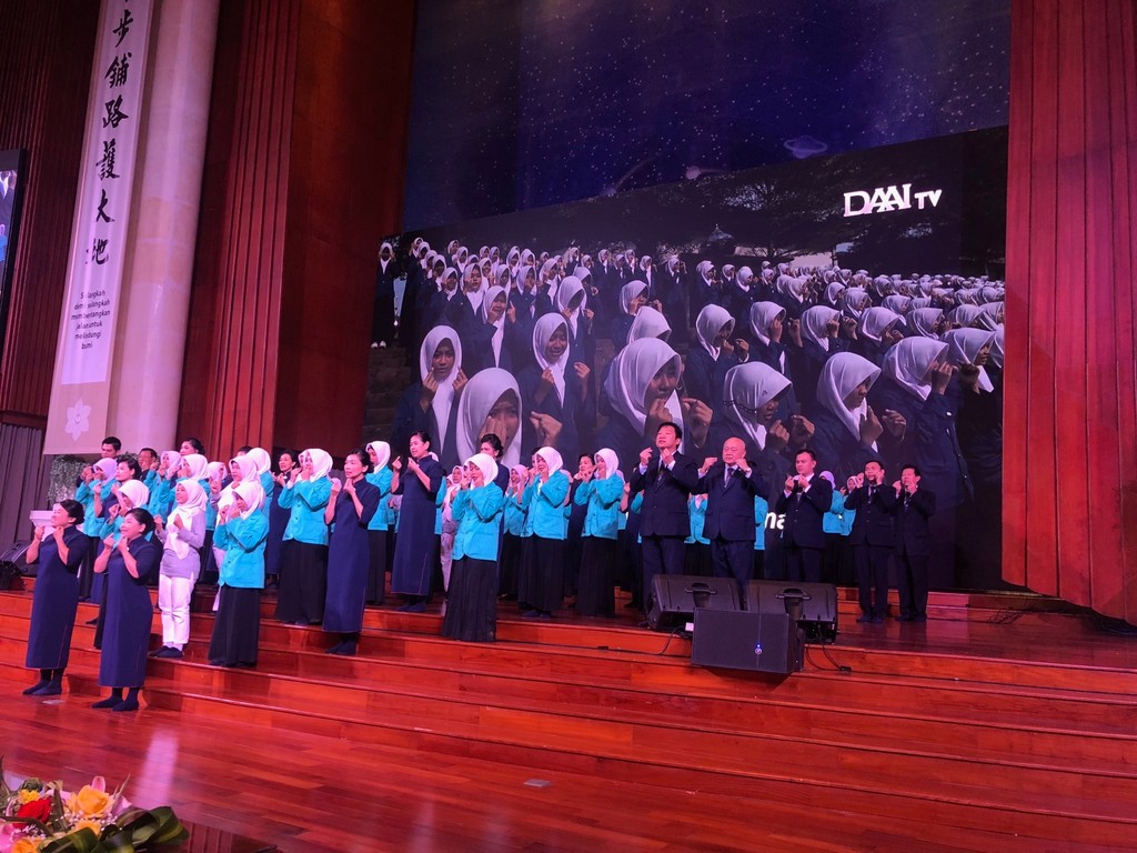 6月4日下午各政界、宗教界領袖與信徒,共近2千多人來到印尼靜思堂,參加印尼政府舉辦的全國佛教衛塞節活動,由長期與慈濟互動的回教努魯亞伊曼習經院的學生們,結合慈濟志工、大愛學校老師帶來〈一家人〉手語表演;另外由當地殘疾兒童組織獻出歌舞,傳遞包容與關愛的價值。