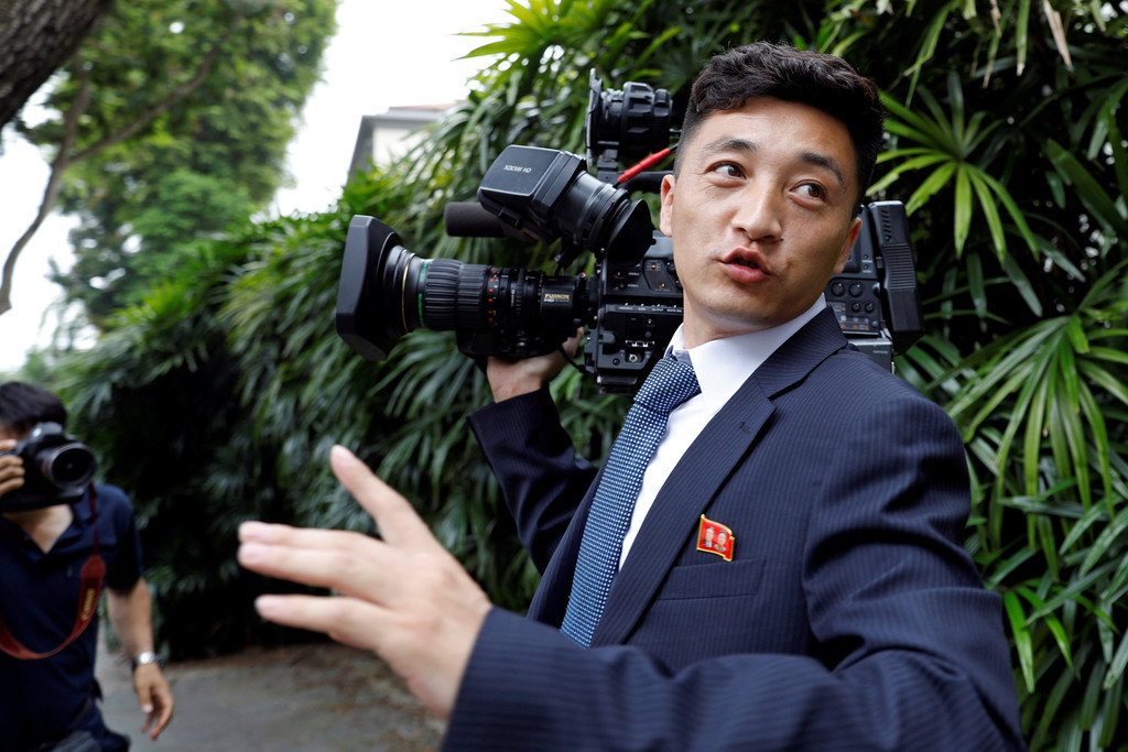 根據《韓聯社》報導,各國多位記者10日下午守候在金正恩下榻的瑞吉飯店外,結果突然間有1名北韓記者走出飯店大門,立刻吸引了現場所有媒體的目光,紛紛上前圍觀拍照,這位北韓男記者顯得有點錯愕,似乎不懂自己為何變成採訪對象,露出尷尬的笑容後就迅速退回飯店裡。