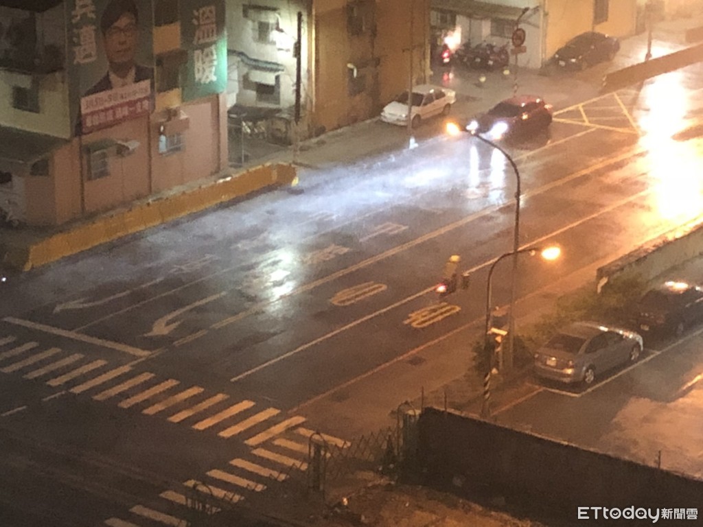 10日晚間22點35分左右,瞬間來的雨勢加上風力,讓不少機車騎士到路旁屋簷下躲雨,許多車輛也放慢速度行駛;氣象局也對全台18縣市發佈豪雨及大雨特報,提醒民眾攜帶雨具備用。