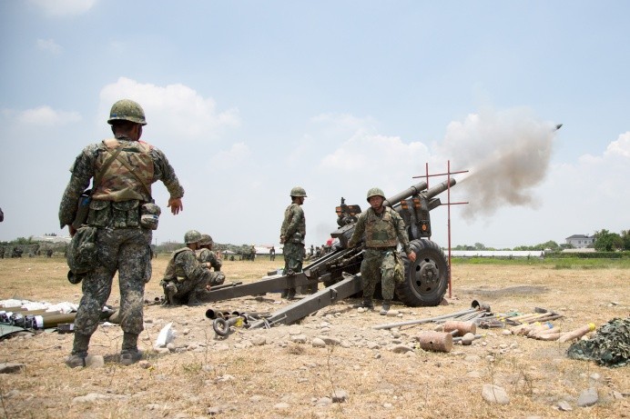 「預備放,發射了。」擔任戰鬥支援部隊的陸軍第58砲指部在濁水溪南北岸進行基地訓練營教練實彈射擊科目,官兵複誦砲操口令,精準操作每一門火砲射擊步驟,完成砲彈發射作業,希望透過實彈射擊訓練,提升砲兵專業職能。
