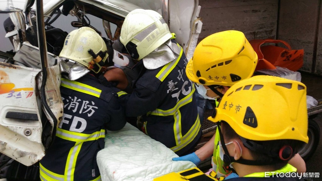 現場警消見眾後立即以移動式油壓破壞器材撐開駕駛座空間,先讓司機雙腳脫困,最後於上午8時27分成功將該名司機救出;但當時救護人員評估其生命徵象,發現患者意識不清,且無呼吸心跳,已經呈現OHCA,經緊急處置後立即送往亞大醫院搶救,但最後該名駕駛仍因傷勢過重,於上午9時許宣告急救無效死亡。