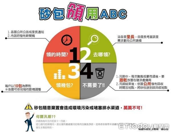 ▲因應梅雨鋒面來襲,桃園市政府水務局備妥3萬2,000個砂包,6/13開放領取。(圖/水務局提供)