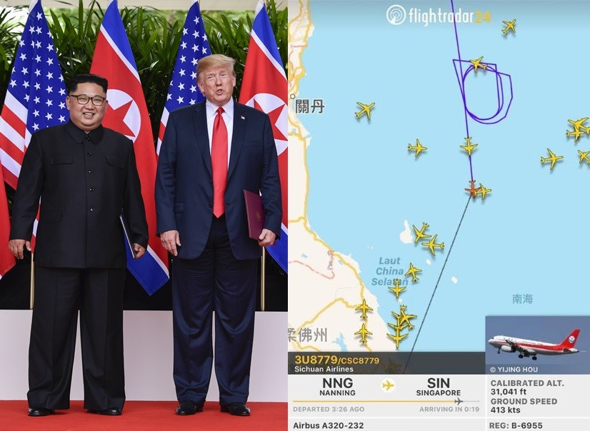▲ 金正恩預計今晚9點之後離開新加坡,川普已經在6點25分搭乘空軍一號返回美國。(左圖/達志影像/美聯社)(右圖/《ETtoday新聞雲》)