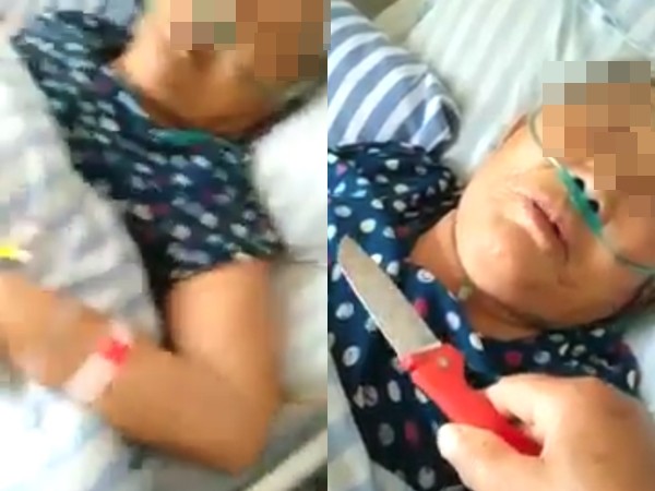 太不孝!近日網路瘋傳,大陸一名女子為了逼問在病床上的老母親戶頭內有多少錢,竟拿刀子架在對方的脖子上,還狂言說,「你以為我回來是探病的?」讓網友全都怒了。