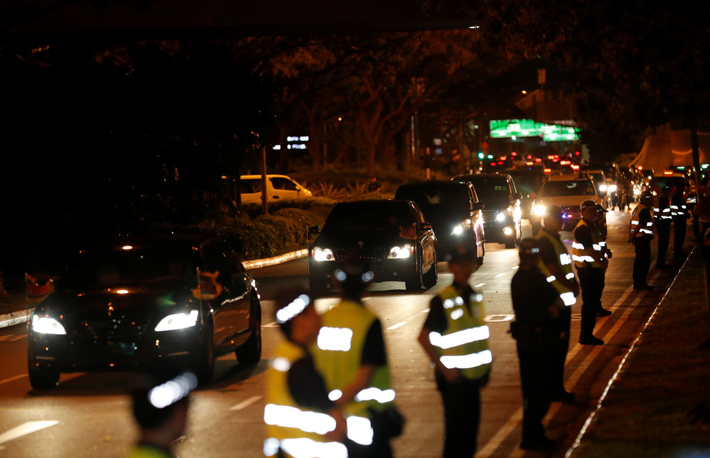 ▲北韓車隊晚間前往新加坡樟宜機場。(圖/路透社)