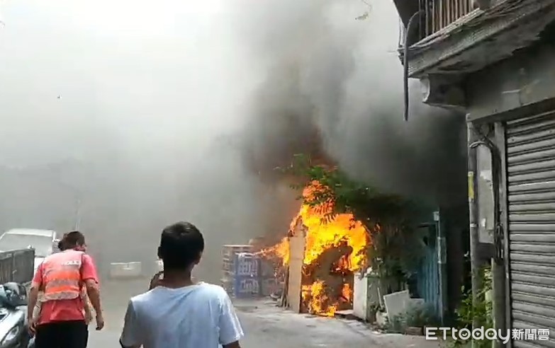 新北市板橋區萬安街103巷13日中午傳出火警,起火的是一間紙工場,現場傳出爆炸聲;巧的是,事發地點正好在王炳忠老家旁,而王炳忠今天上午才遭台北地檢署起訴。