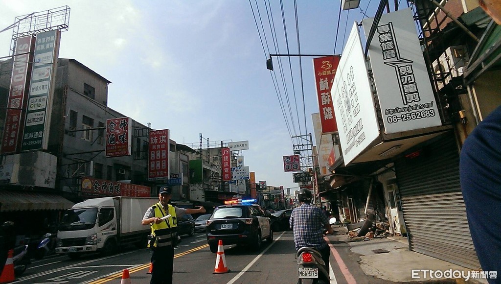 ▲市警三分局在肇事現場管制交通。(圖/記者林悅翻攝)