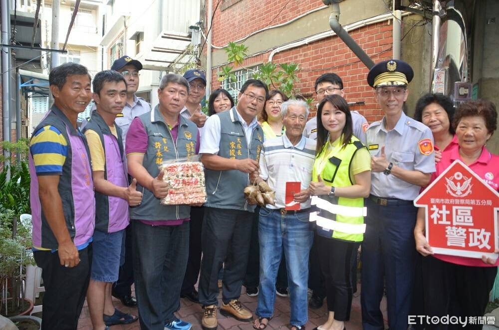 台南市警五分局長吳清飛,偕同熱心公益之台南市守望相助大隊長、義警中隊顧問宋俊明,並有永祥里里長高凱旋、振興里里長童小芸及正覺里、振興里守望相助隊等陪同慰問。
