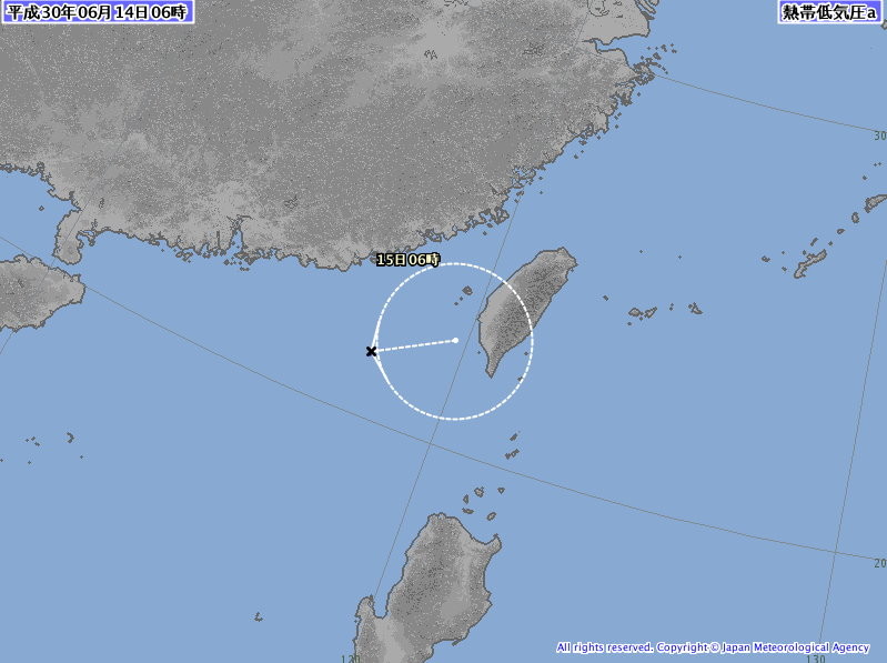 氣象局表示,熱帶性低氣壓目前在鵝鑾鼻西南西方300公里的海面上,向東北東移動,時速15公里,請在東沙島海面、巴士海峽航行及台灣海峽南部,航行及作業船隻特別注意;一旦發展為颱風,本局有發布颱風警報的可能,請隨時注意本局發布的最新氣象資訊。