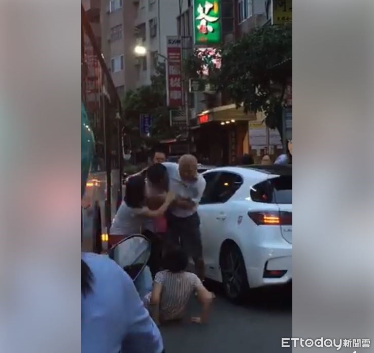 新北市一名駕駛客運的丁姓男司機(47歲),13日晚間6時許行經五股區民義路一段時,突然張男(63歲)駕車突然切處車道,丁男緊急剎車後,卻造成同在車上的女兒牙齒撞傷,丁男憤而下車跟對方理論,雙方一言不合後當眾大打出手,民眾拍下衝突影片後PO網,網友氣憤指出:「對方根本違停在公車停靠站!」