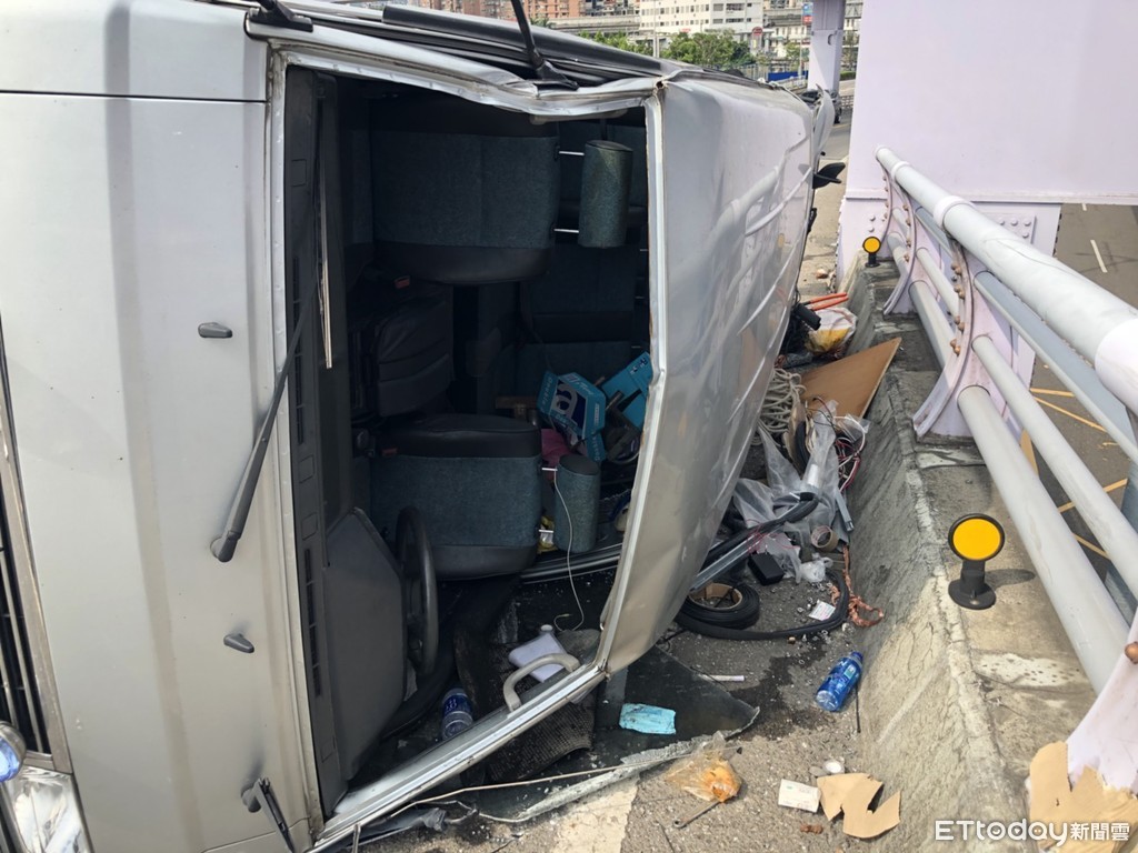 新北市一名36歲林姓女子今(14日)早上8時許駕駛銀色廂型車,載著另名女性友人行經新店區中安大橋安和路上橋處時,疑似因醉意滿點,車輛一路搖搖晃晃,竟撞到護欄逆向翻覆到對向車道,時值上班尖峰時間,女子翻車造成交通大癱瘓,民眾見狀急忙報警。