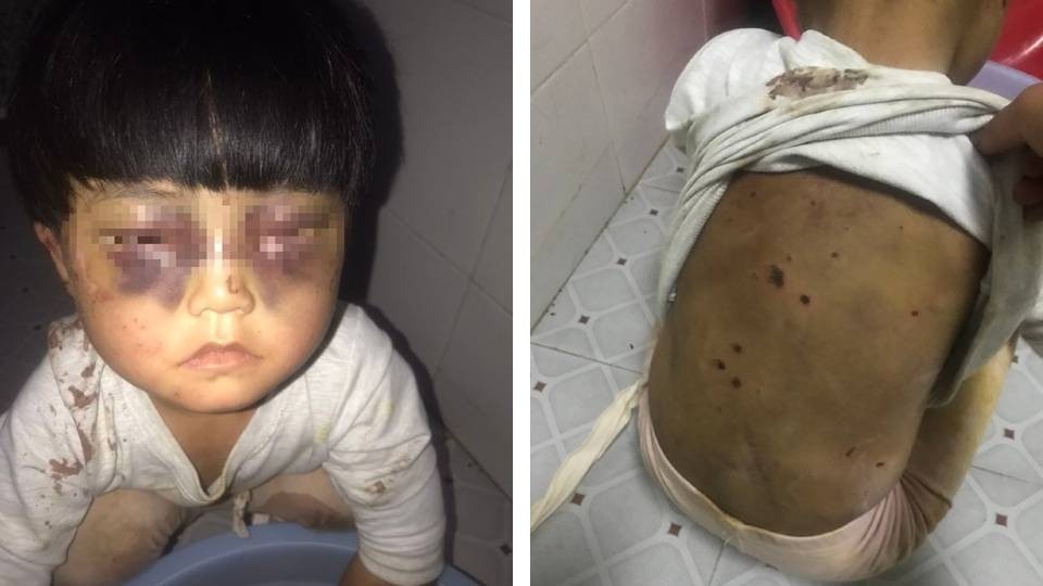 從親戚拍攝的照片可以清楚看到,女童小小的身軀都是傷疤,稚嫩的皮膚被香菸燙得黑一塊紅一塊,手臂上的長條形傷口結痂化膿。更可惡的是,女童的雙眼被毆打到瘀青紅腫,眼睛幾乎快睜不開,白色的衣服上還沾染鮮血,讓人無法想像女童是遭受了怎樣的煉獄般虐待。