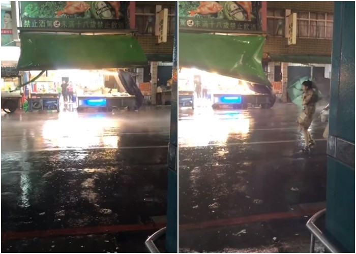 網友晚間在「爆料公社」貼文表示,「高雄市六合夜市14日19:15,這風雨也太扯了,根本颱風天了!在外頭的大家要小心注意安全!」