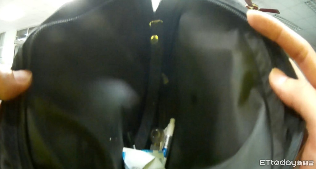 ▲員警對廖姓傷害通緝犯實施附帶搜索,在廖嫌之隨身包內查獲吸食器及玻璃瓶1支,警方依毒品危害防制條例移送。(圖/台東縣警察局提供 下同)