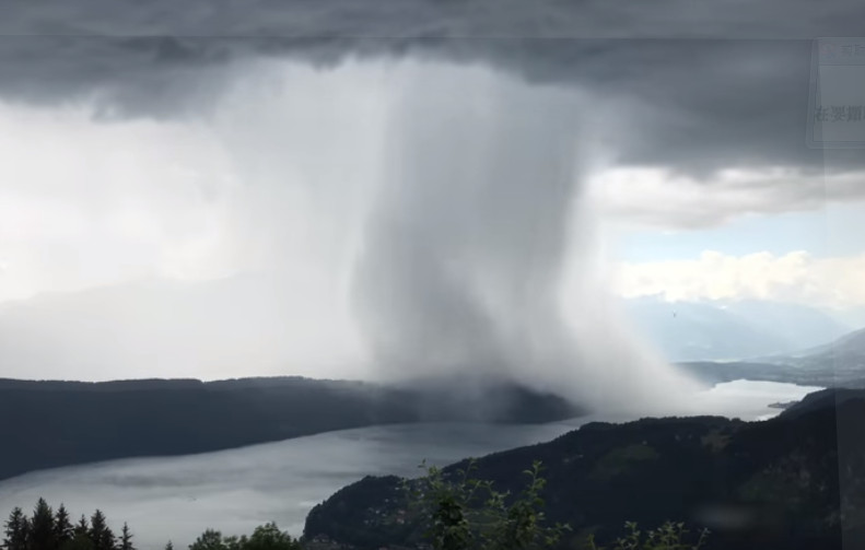 根據Peter Maier的臉書貼文指出,這段影片的拍攝地在奧地利米爾施塔特湖(Millstätter See),且這壯觀一刻就發生10日。而中央氣象局副局長鄭明典也在臉書分享網友的影片,網友Dennis Chen指出,「雲:吸飽水氣,帶著大量雨水飛行,但實在太重了…終於破漏渲洩下來…這短暫的影片,全被網友拍攝入鏡,太神奇了。」