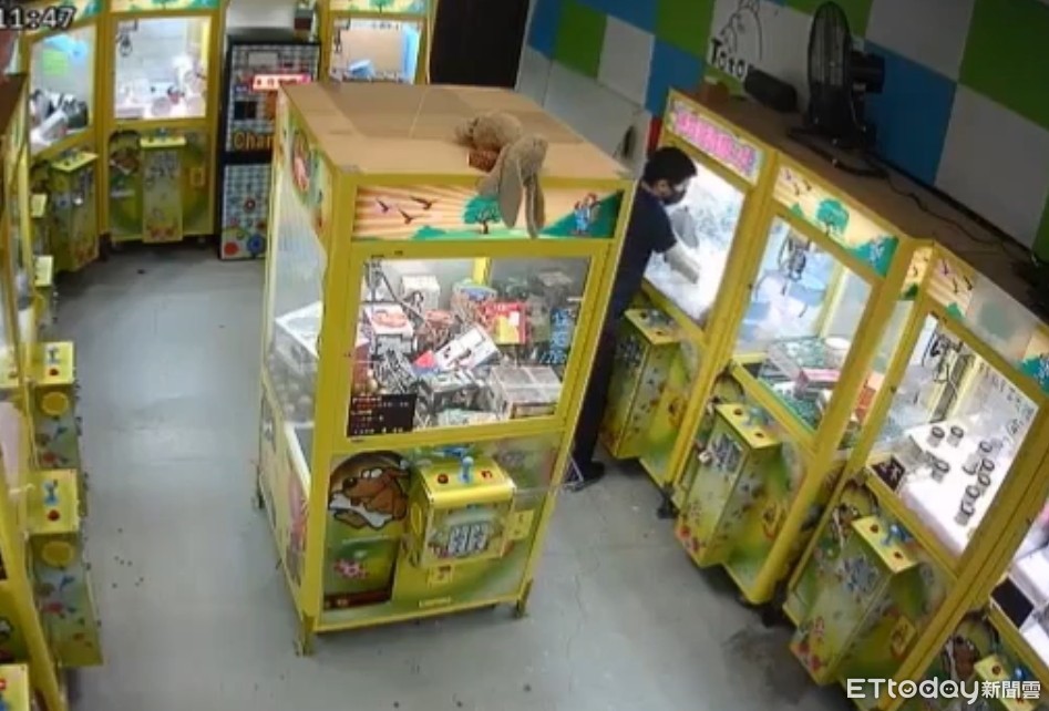 ▲20歲王姓男子組成竊盜集團,以租車懸掛偷竊車牌,在台中、嘉義、台南等多家娃娃機店,以榔頭破壞娃娃機臺玻璃,將高單價藍芽喇叭、公仔等商品全部搜刮一空。(圖/記者林悅翻攝)