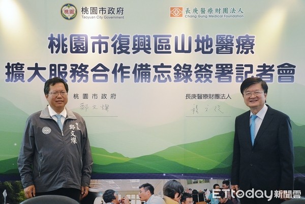 「桃園市復興區山地醫療擴大服務合作備忘錄簽署記者會」,15日在市府舉行,鄭文燦表示,市府與長庚醫療財團法人合作,擴大5項山地醫療服務範圍,由長庚醫療財團法人每年編列500萬元經費支應,鄭文燦肯定長庚基於社會福利的理想,肩負更高的醫療責任,用龐大的醫療能量支援偏鄉醫療資源。