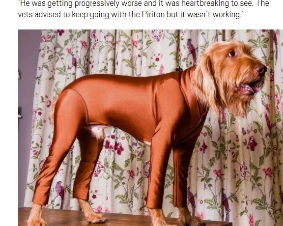 為何這隻狗狗都要穿緊身衣?英國曼徹斯特一隻7歲匈牙利維茲拉犬史丹(Stan)在3年前被診斷出有「花粉症」,只要走出戶外,就會「皮膚過敏」,很癢又不舒服。史丹的主人克絲汀(Kirsten Armitage)試過許多方法治療牠的花粉症,但全都無效,直到發現了這個「狗狗緊身衣」。