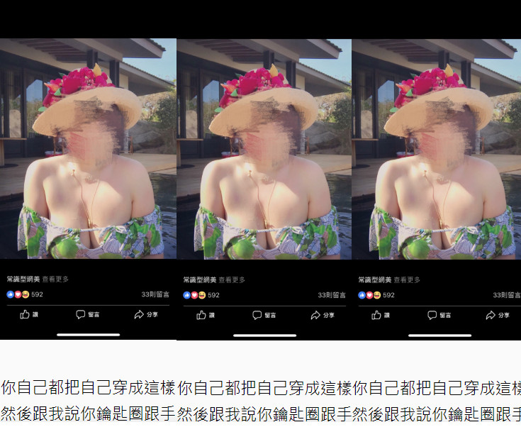 遭女網友貼文評論的B姓網美大頭貼照片穿著低胸上衣,露出深邃乳溝及雪白的雙半球,F奶的好身材不容置疑;近日她發表對於性騷擾的看法,「女性真的是主要受害族群,而且比例懸殊」、「討論性暴力經常聚焦在女性,不是我們刻意忽略男性,而是這社會環境對女性的人身安全充滿威脅」,最後還在文末教導如何自保「我的鑰匙圈和手機背帶特別挑過,方便防身」。