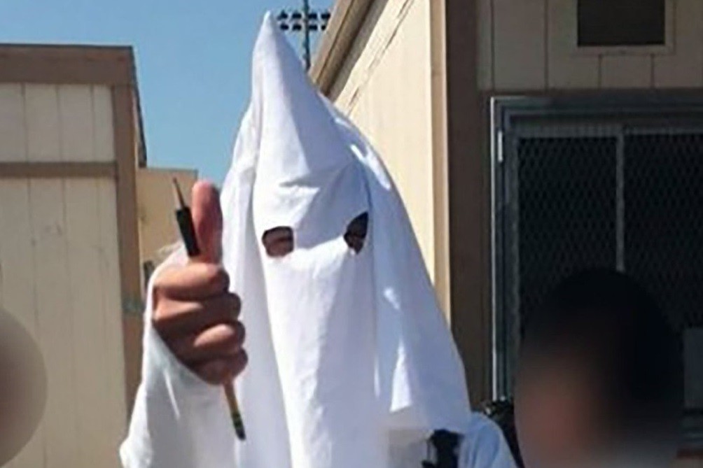 當地媒體報導,這件事發生在港區師資預備學校(Harbor Teacher Preparation Academy )中,該學生為了配合歷史課的報告,從頭到腳都穿了「3K黨」的象徵性服裝,包括用尖尖的白色帽子遮住臉,在挖兩個洞露出眼睛。3K黨是提倡白人至上主義等右翼思想的象徵,讓許多學生都感到很震驚。