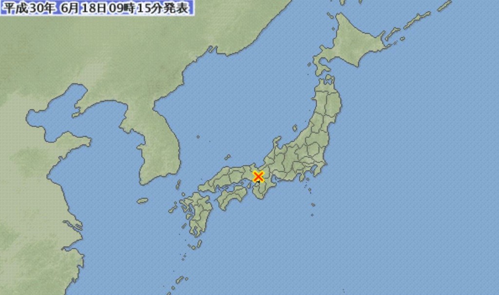 ▲日本關西地區在當地時間18日早上7時58分發生規模5.9地震。(圖/取自日本氣象廳官網)