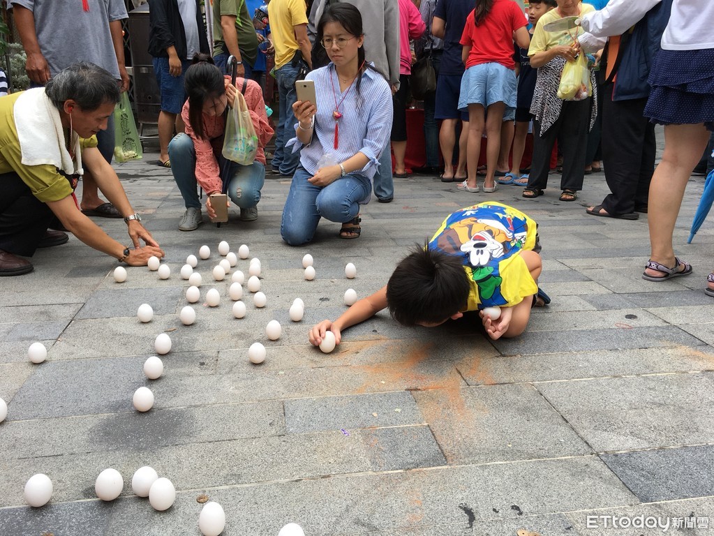 ▲全台白龍庵安慶堂「五瘟宮」恭祝五毒神壽辰及慶賀端午,18日端午節舉行「立蛋」轉運除厄活動,多位民代都下場立蛋。(圖/記者林悅攝)