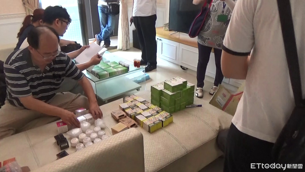 ▲警方15日前往李姓女子的住處搜索,當場起出大批禁藥以及未經核准的化妝品。(圖/記者柳名耕翻攝)