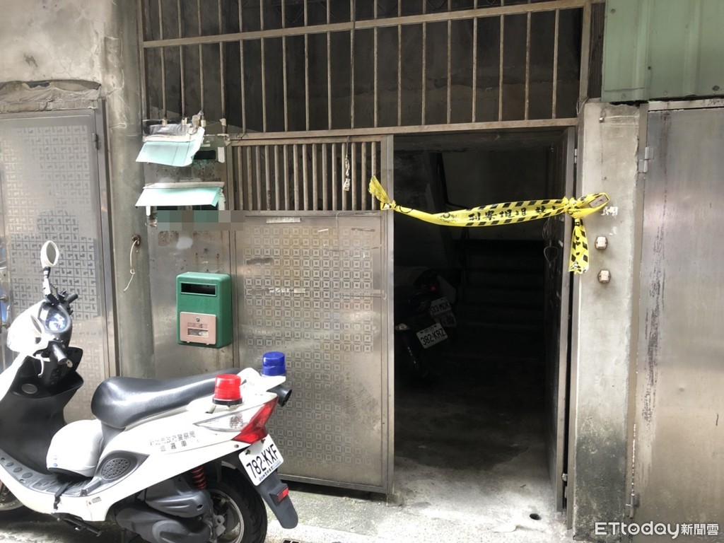 ▲兇殺現場位在公寓二樓,警方到場拉起封鎖線採證。(圖/記者趙永博攝)