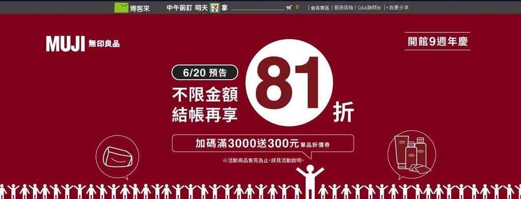 ▲博客來歡慶MUJI無印良品開館9週年慶,將於6月20日推出單日限定優惠。(圖/翻攝自博客來)