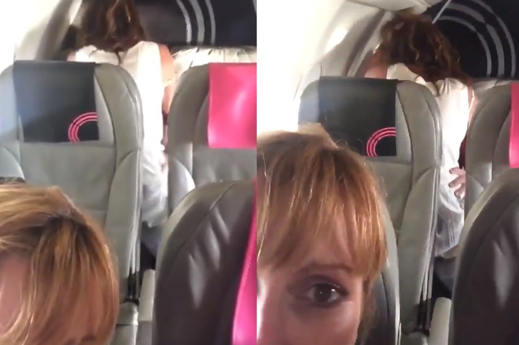 影片中飛機引擎的聲音很大,所以無法清楚聽到這對在辦事的情侶是否有發出聲音,但可以看到突莉的媽媽瞪大了眼睛,似乎是覺得又驚訝又好笑,不敢相信現在的年輕人這麼開放,接著她拍向座位前方,這是一架小型飛機,雖然沒有坐滿,但仍有其他乘客,似乎沒有人發現飛機後方正上演精采動作片。