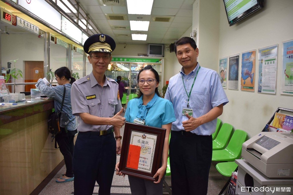 1名老太太接獲「假檢警真詐騙」手法行騙,老太太不疑有他前往郵局要匯款140萬元,郵局行員發現可疑,通報台南市警五分局開元所員警查處,及時阻詐成功,市警五分局長吳清飛20日上午特前往頒發感謝狀及獎勵金表揚行員。