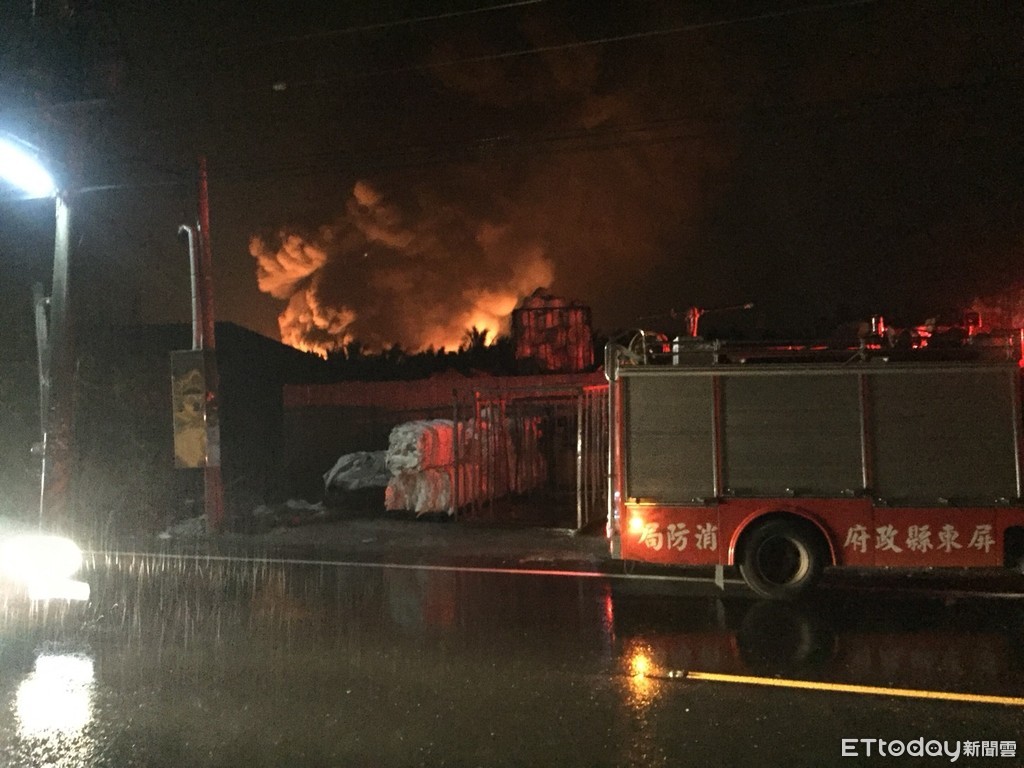 01時11分第一梯次救災車組到場回報現場員工表示,現場無人員受困,但場所為作塑膠粒子工廠,燃燒面積約3000平方公尺,火載量極高,現場指揮官消防局秘書陳同成到場後立即指示加派水源車支援,立即派遣里港、高樹、屏二、萬丹、內埔、竹田、潮州等7分隊水庫車前往支援,並同時加派屏東分隊化學車前往,總計出動25車44人。