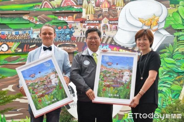 ▲桃園心藝象巨型彩繪牆、醒目矗立於「宏亞巧克力共和國」入口處。(圖/桃園市政府提供)