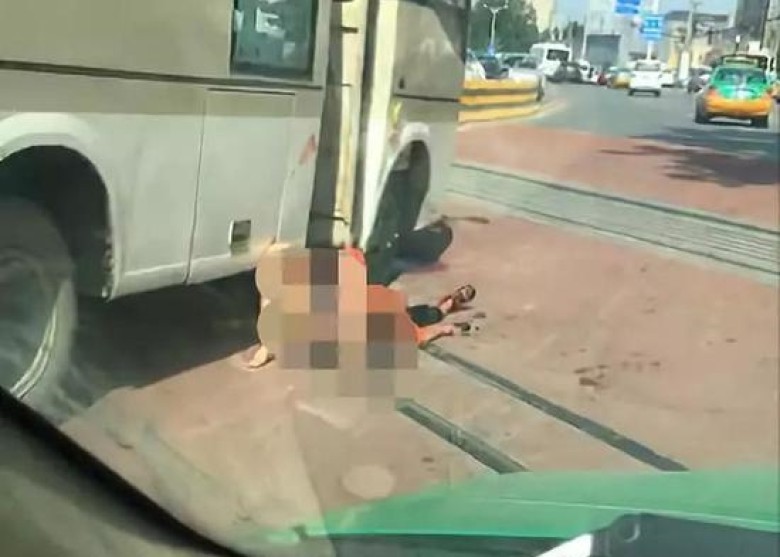 ▲一對母子倒臥在公車旁,滿身是血。(圖/華商報,下同。)