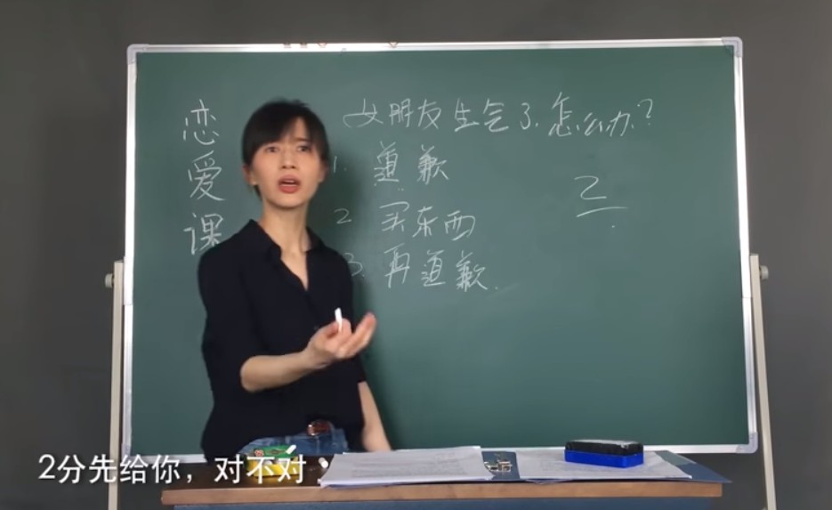 上海網紅papi醬先前扮演一本正經的老師,教大家如何「談戀愛」,影片中共有3大女朋友最常提出的問題,像是「我穿這件衣服怎麼樣」、「今天是什麼日子」等,只要照著papi醬提供的解法來回答,包準讓另一半心服口,戀情超順利。