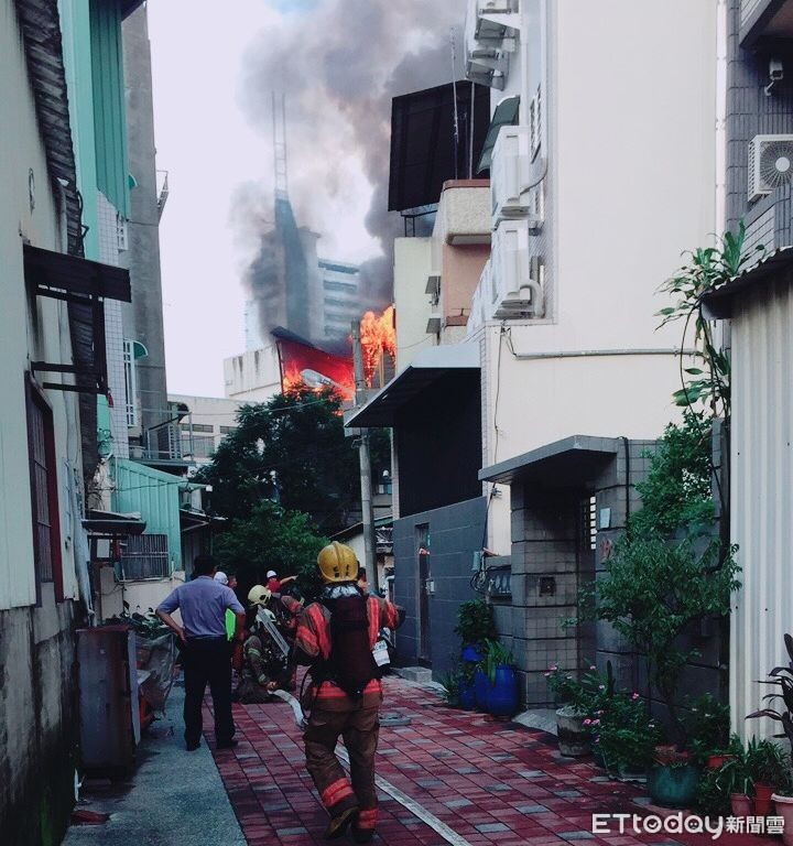 ▲台南市中西區金華路4段47巷1棟3樓民宅,23日清晨6時47分發生火警,台南市消防局出動16車43人前往搶救。(圖/記者林悅翻攝)