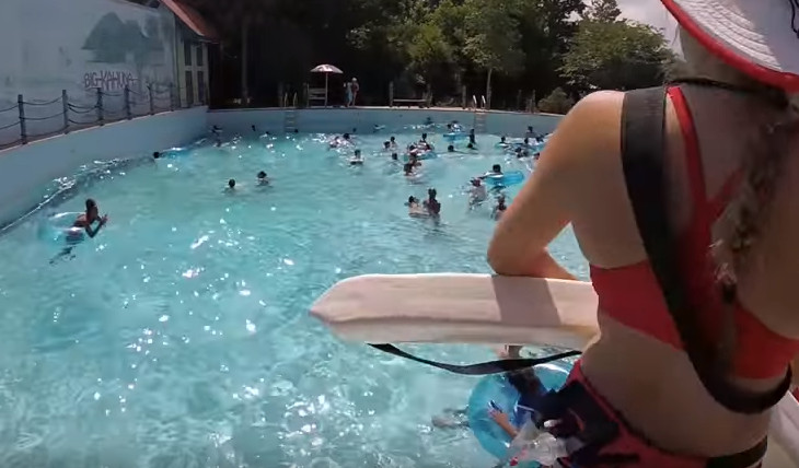 在這則約90秒影片中的前20秒,只看到兒童、少年們在水中嬉戲,場面歡樂,很難發現出任何異常。但仔細往畫面中心偏右看,便會發現有一個女童在泳池一波波的人造浪中一再揮舞雙手又一再被淹沒,前後至少30秒。女童的雙腳似乎搆不到底部,只見她努力踢水讓頭浮出水面以避免沉到水底,並一度捏住鼻子避免吸入水。