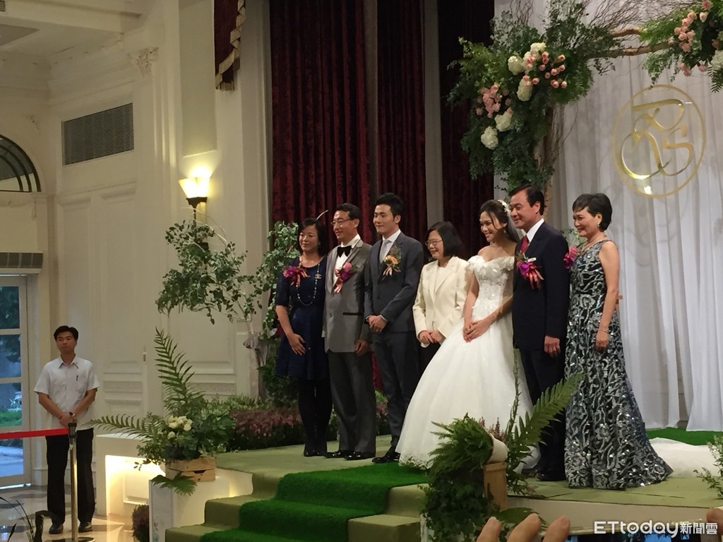 「也可以看到夫人也是滿臉笑容,這是他們這一生最幸福的時刻!」蔡英文最後,則給予這一對新人最大的祝福。