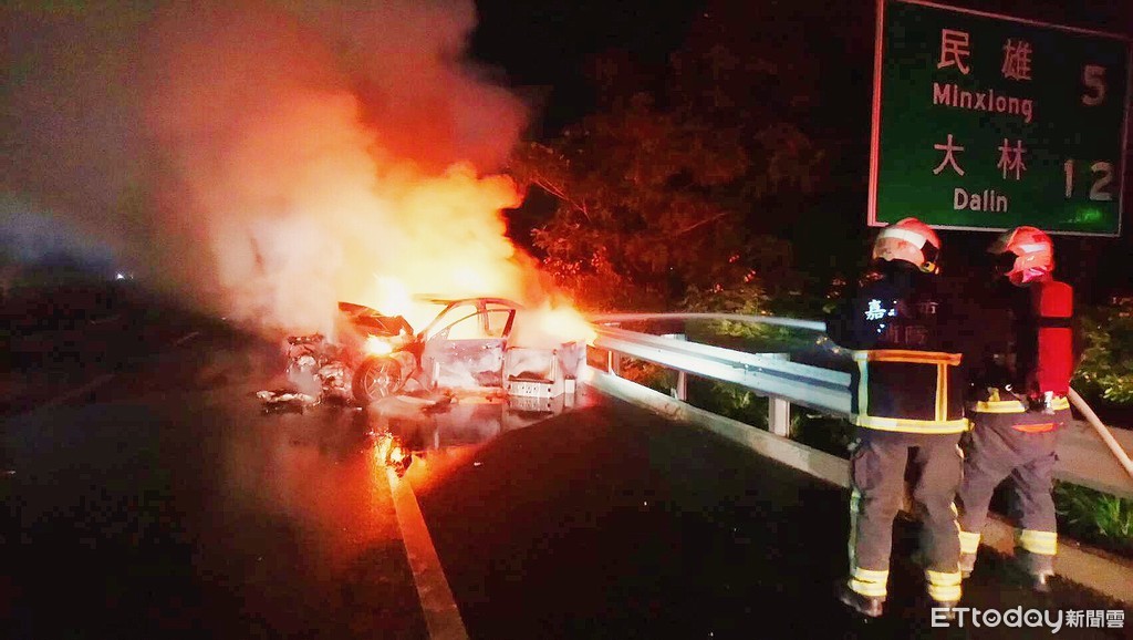 中山高速公路北上262.3公里處(靠近嘉義交流道)於深夜00時11分傳出2部車追撞並起火燃燒意外,火勢猛烈,嘉義市政府消防局德安分隊立即出動2部水箱車由小隊長陳鏘園率人車前往現場搶救,到達現場後發現1部自小客車及1部小貨車疑似碰撞意外並起火燃燒,火勢猛烈,且分隔兩處燃燒。