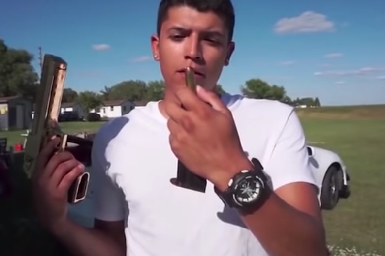 ▲美國明尼蘇達州一名22歲男子竟然自身開槍做試驗。(圖/翻攝自YouTube,下同)
