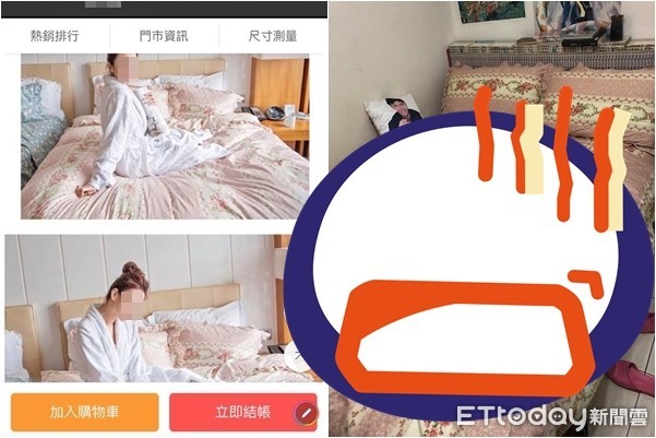 「真的超悶!」聶羽函說,床單到貨後並沒有馬上急著拆,而是過了幾天後才打開包裹查看,雖然商品的樣式確實與照片中一樣,但應該是粉色調的顏色卻更加深,而這色差深淺的小小差異,卻決定了一個是「網美少女風」、而另一個則是「古早阿嬤風」。