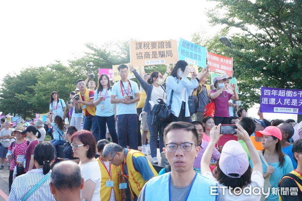▲▼統一發票盃桃園場路跑,法稅改革聯盟發動志工舉牌推動稅改受側目。(圖/記者楊淑媛攝)