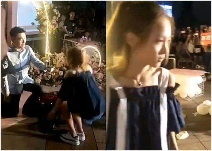 微博從19日起就瘋傳這段影片,並寫道,「他們在一起七年了,男孩不想結婚女孩才跟他分手的,分手2個月來求婚,拒絕了」。畫面中只見一位清秀正妹板著臉到場,男生卻似乎沒事一樣,開心單膝下跪,想要給女方求婚驚喜,現場有不少男生友人,還有路過民眾圍觀。