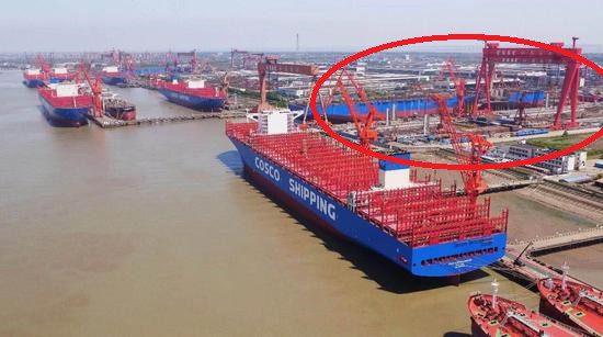 江南造船廠近日罕見曝光了一組「4號船塢」外觀照,可以清楚看見搭配的大型龍門吊與部分施工的設備。值得注意的是,這個船塢除了是大陸第二艘自製航母的預定建造地之外,它的長度也十分驚人,來到了565公尺長,而作為參考,之前承建002航母的大連造船廠船塢長度僅有370公尺,兩者之間差了足足近兩百公尺。
