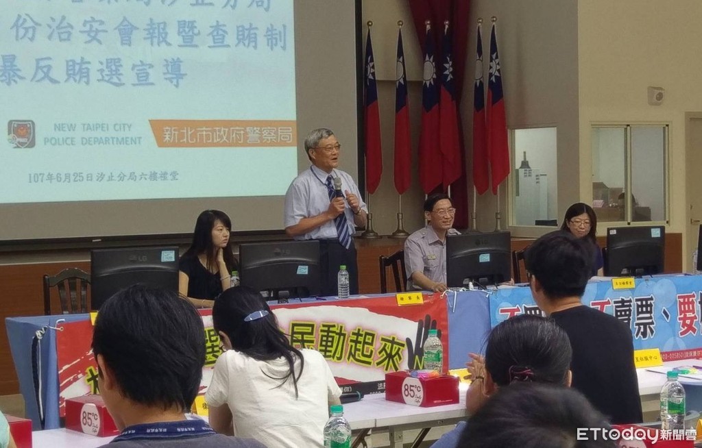 ▲汐止警舉辦社區治安會議,檢察長也到場宣導反賄選淨化選舉。(圖/記者林煒傑翻攝)