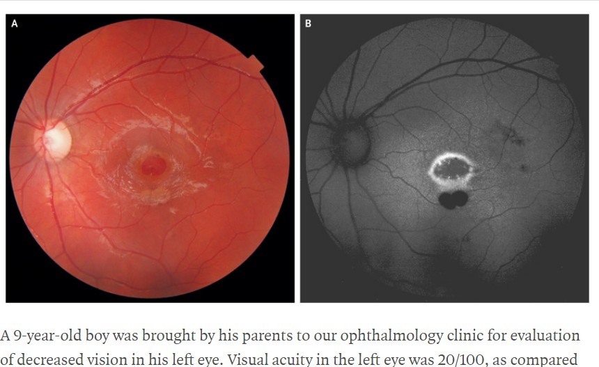 ▲男童視網膜被雷射筆燒出大洞。圖/翻攝自The New England Journal of Medicine網站)