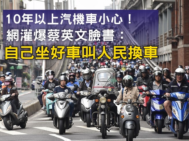 台灣空氣污染嚴重,立法院三讀通過《空氣污染防制法》修正案,針對超過10年的老舊汽、機車將加嚴排放標準,經通知屆期未改善者,最高可處6萬元罰鍰,甚至撤照。對此,許多網友灌爆總統蔡英文、行政院長賴清德及立法院長蘇嘉全的臉書,「自己坐好車,叫人民換車」、「栽贓老車誣蔑我的回憶不行」。網路也盛傳「2030年汰除全部燃油車使用」,對此,環保署澄清這是錯誤說法,是「2035年新售機車全面電動化」,且改善老舊汽機車污染有其迫切性及正當性。
