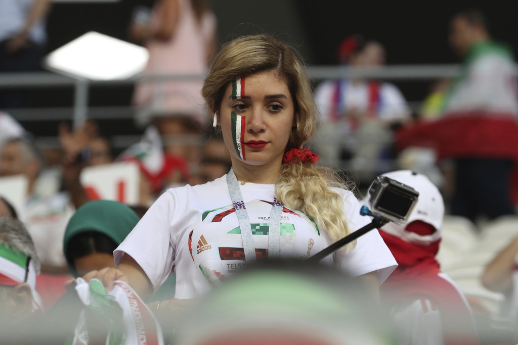 伊朗國家隊今年表現令人讚嘆,首戰靠烏龍球擊敗摩洛哥;和西班牙、葡萄牙對抗時氣勢驚人,儘管拼到最後一刻輸球,但精神值得肯定。這次比賽,政府特地開放球迷到阿扎迪球場一起為國家隊加油,場邊不乏許多伊朗女性球迷,她們紛紛拿下頭巾、面紗,畫面透過電視轉播被全世界看見,這些女性的臉龐也讓不少人驚呼超美。