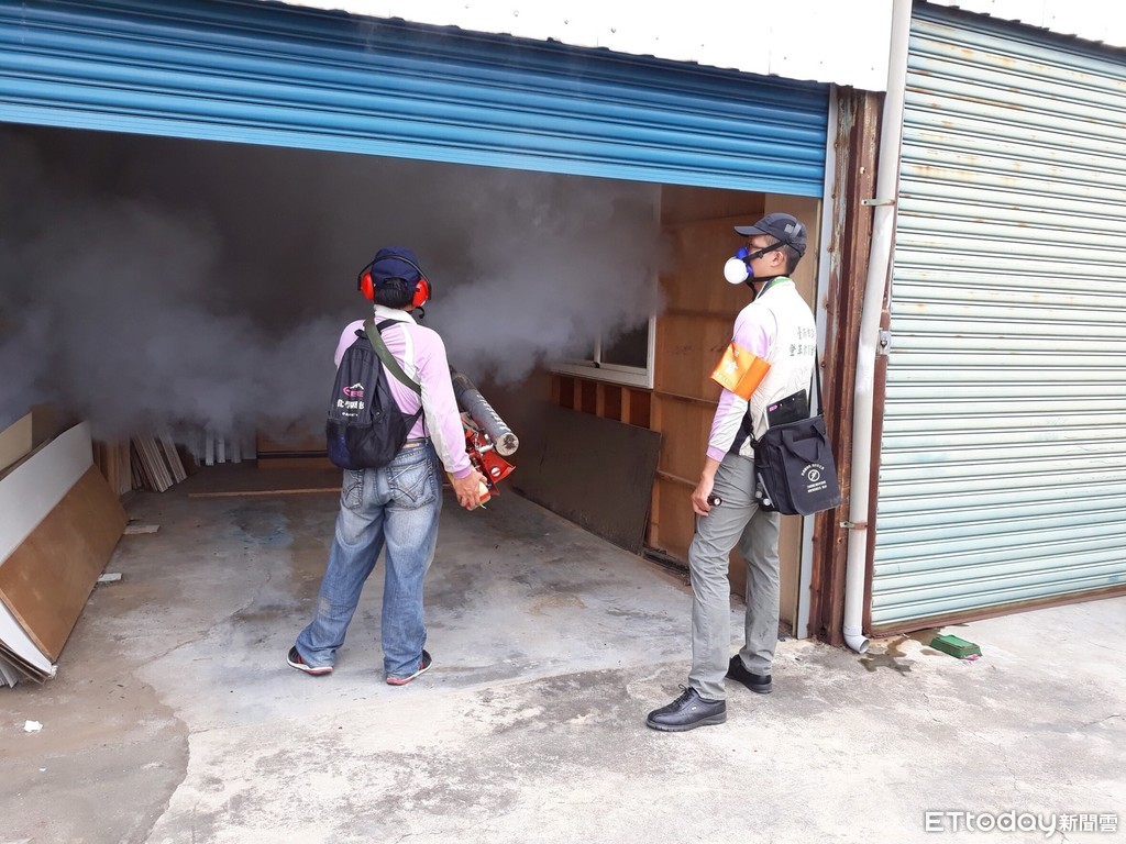 ▲台南市進行境外第7例境外移入登革熱病例,永康區工作地化學防治。(圖/記者林悅翻攝)