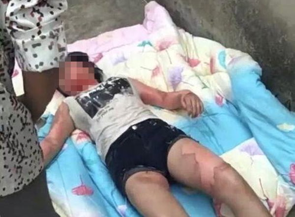 ▲從目擊者提供的圖片中看到,少女身上的燙傷非常明顯,腿部還出現脫皮的情況。(圖/翻攝《名城揚州網》)